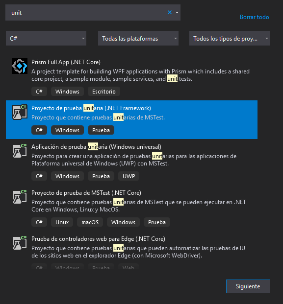 Tenemos 2 marcos para escribir casos de prueba en C #,
